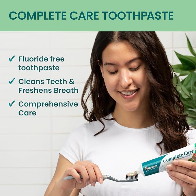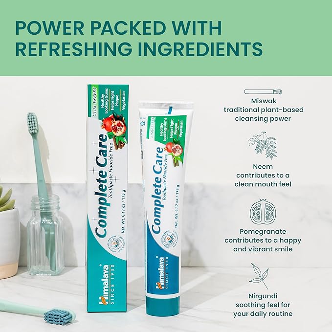 Himalaya Complete Care Toothpaste, Fights Plaque, Freshens Breath, Fluoride Free, Plant-Based, with Neem, Pomegranate, No Artificial Flavors, Cruelty Free, Mint Flavor, 6.17 Oz, 2 Pack…