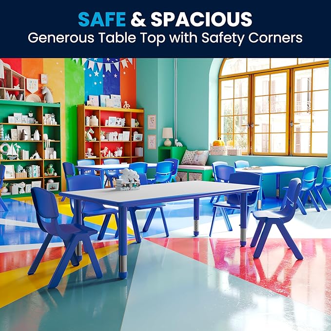- HOME OR SCHOOL USE: Measures 23.625" W x 47.25" D x 14.5-23.5" H and is applicable in the home and school environments, making it perfect for classrooms, playrooms, dining rooms, kids bedrooms, and daycares