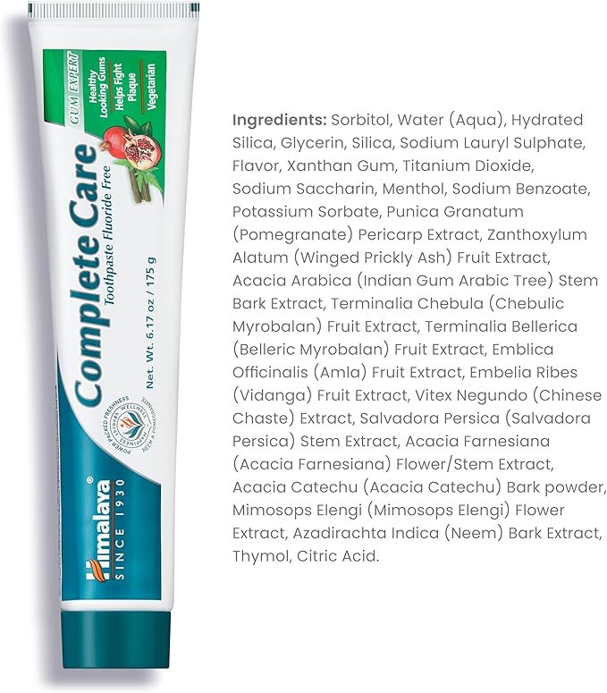 Himalaya Complete Care Toothpaste, Fluoride Free to Reduce Plaque and Brighten Teeth, 6.17 Oz