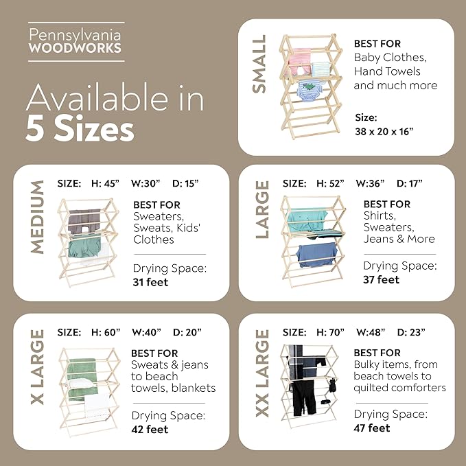 - Furniture-Grade Construction: Made in Pennsylvania's Amish Country (USA), this hand-crafted laundry drying rack features thick 1-1/4" hardwood slats & 3/4" wood dowels for strength & stability.