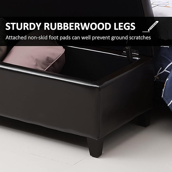 - Sturdy, Solid Base: The solid upper frame of this storage bench is further supported by four dark, covered hardwood feet that can support up to 265 lbs. ensuring worry-free seating and storage.
