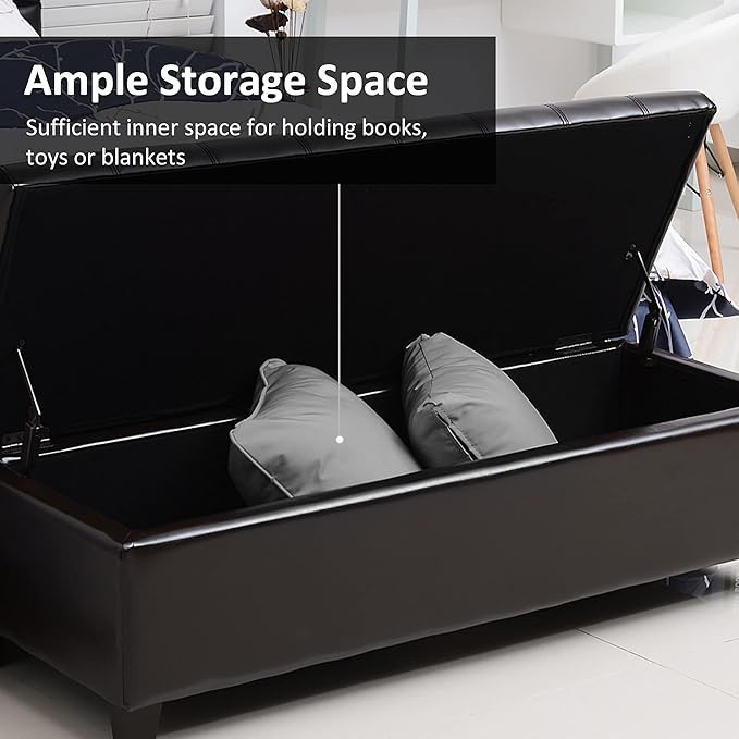 HOMCOM 51" Ottoman Storage Bench, Faux Leather Storage Chest with Lift Top, Tufted Ottoman for Living Room, Entryway, Dark Brown