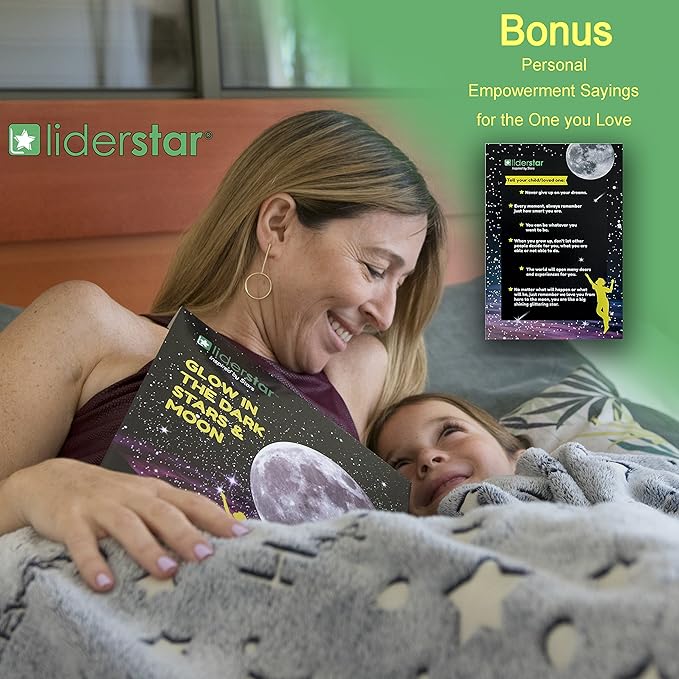 - A GIFT THAT’S OUT OF THIS WORLD – Looking for the perfect gift for boys or girls, Halloween,Christmas? - Liderstar’s glowing stars kit. In addition to 220 brilliant stars, we’ve included full moon, and a FREE affirmation card to build strong bonds, foster healthy relationships. And to top it off, the entire set arrives in a beautiful old record style package, making it the perfect present for stargazers and curious spirits of all ages