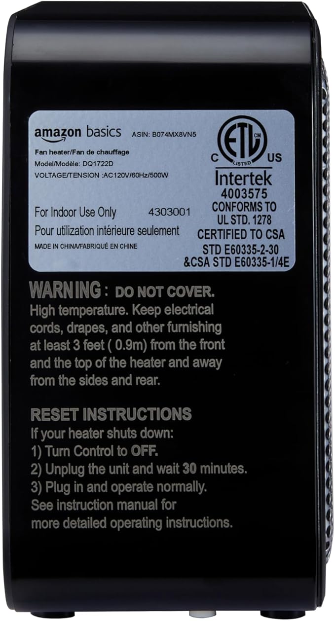 - Item Weight 1.4 Pounds : Heat Output 500 Watts