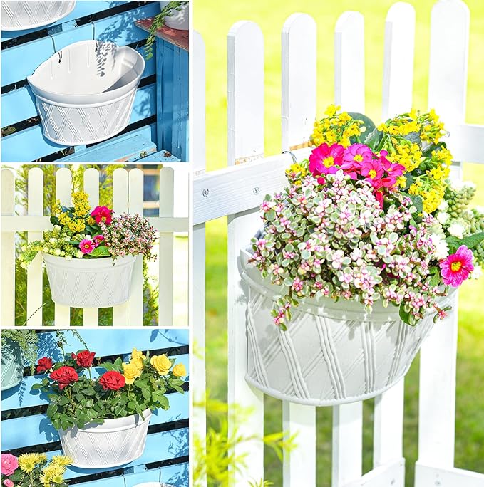 - WALL HANGING DESIGN: Amazing Creation hanging plant planters come with 2 metal hooks that make it easier to hang them on railings, balconies, a wall display, or even a fence in the backyard or any place you want.