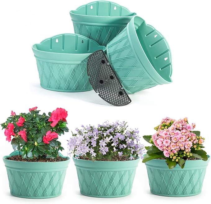 Sungmor Wall Hanging Planters,11.5 Inch Hanging Flower Pots for Railing Fence - Indoor Outdoor Balcony Wall Planter Hanging Basket, Plastic Pot Plant Container - Half Round & 3PC Pack & Green
