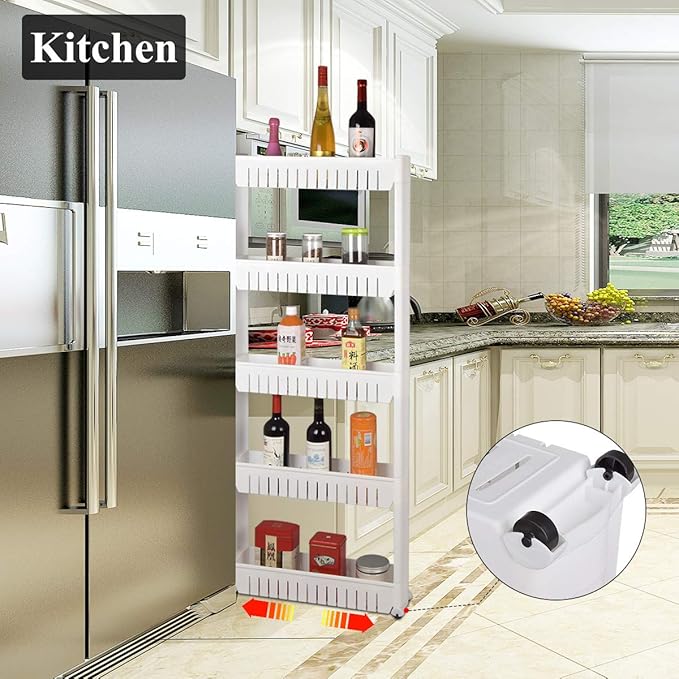 - STORAGE SOLUTION FOR SLIM THIN NARROW SPACES ORGANIZATION – Make life more simple and less cluttered with this convenient slide out shelving unit. Great for canned food, spices, laundry supplies, pet supplies, home and bath cleaning supplies, and even kid’s toys.