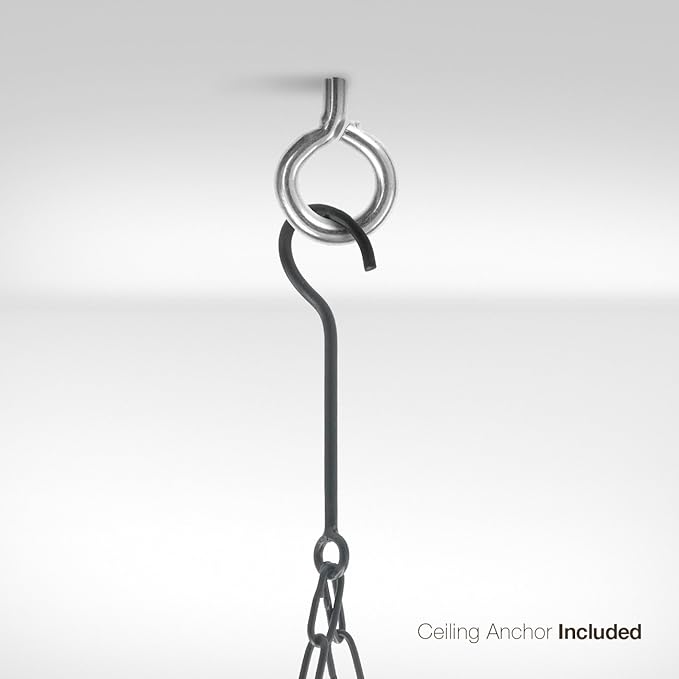 - EASY TO ASSEMBLE — Minimal assembly required with quick set-up — Package includes grid rack with 2 hanging chains, 10 pot hooks, and mounting hardware — Made of metal with powder-coated finish — Beautiful oval frame for stylish look — Complements most light fixtures, appliances, cookware, and design interiors — Measures approximately 31.50" L X 16.50" W X 21" H