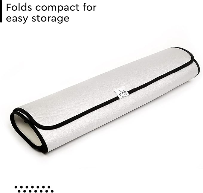 - QUALITY: Metallic Silver layer is coated on fabric & laminated with thick Foam pad (0.2") for soft and quick ironing. Silicon Mat attached in one corner for keeping the hot iron.