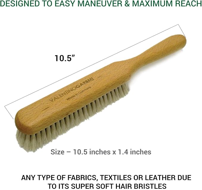 Valentino Garemi Ultra-Soft Goat Hair Cleaning Brush | for Elegant Delicate Flat Fabrics Suits, Jacket, Coats or Couch | Remove Dandruff, Dust, Pet Hair | Made in Germany