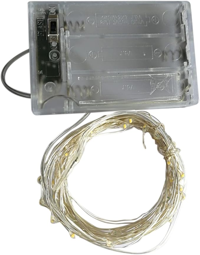 - Dual String Lights: Enjoy the versatility of two sets of Silver Wire Fairy Lights, each measuring 6.6 feet (2 meters) in length. These strings are adorned with 20 micro LEDs and feature a battery case for easy placement and decoration.(3 AA batteries not included)