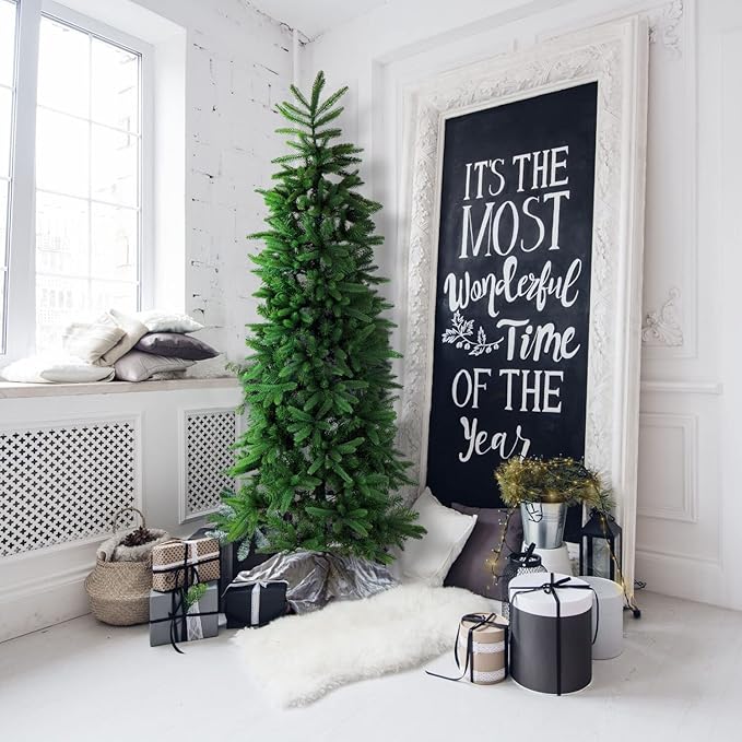 - Trendy Slim Silhouette: The slim silhouette with layered branches will hold all your ornaments, lights, and tinsel