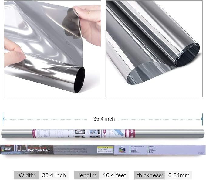- HEAT CONTROL & ENERGY SAVING: One way privacy window film can reflect 85% of the solar heat in summer, reduce heat entering the room and the temperature of air-conditioned rooms. Mirror window film keeps rooms warm in the winter by reducing the amount of warm air escaping and inhibiting cold air from going in. The window tint film can help reduce the cost of expensive air conditioning, but cannot completely replace it.