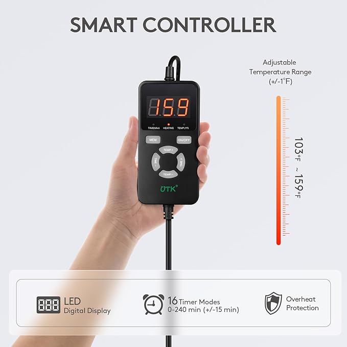 - 【Smart Controller / Temperature】- 103℉-159℉, 4 hours auto shut off.