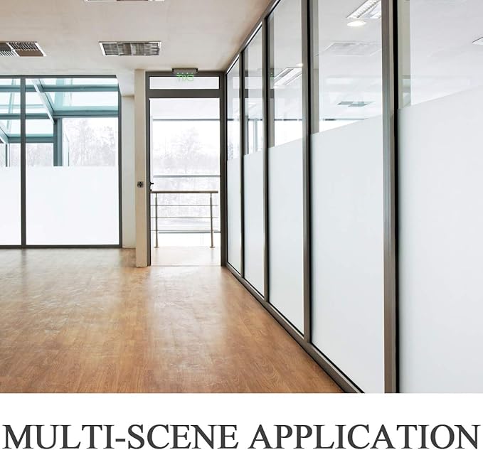 - ECONOMICAL FOR MULTI-SCENARIOS: No need to use heavy and expensive curtains or blinds, the glass frosting film is suitable for any FLAT, CLEAN, and SMOOTH glass door, window surfaces in the Bathroom, Balcony, Living Room, Bedroom, kitchen, balconie, cabinet, office, hotel etc. Note: Double-paned glass, cut glass and all processed glass is not workable for this frosted window film.