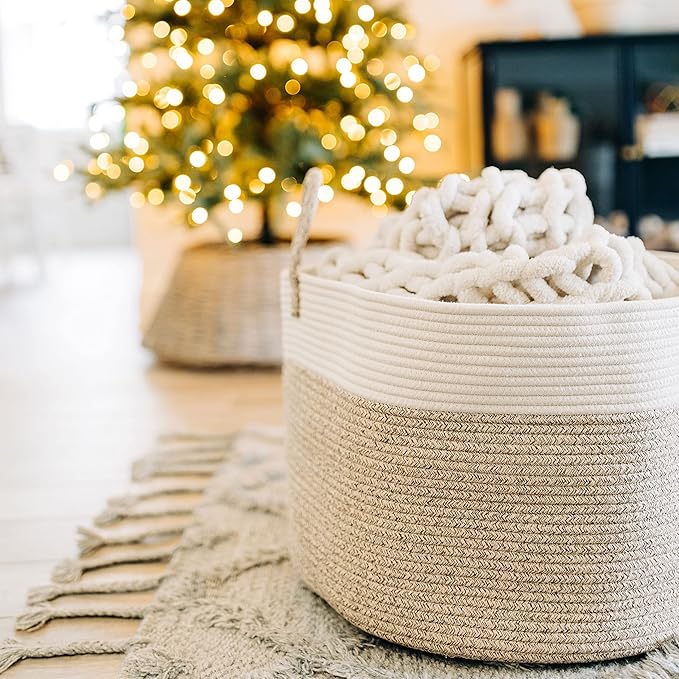 - Beautiful Addition to Your Boho Decor: Elevate your living room decor with this handwoven blanket basket. Neutral tones and minimalist design create a cozy, stylish vibe, perfect for farmhouse, Scandinavian, or boho decor aesthetics.