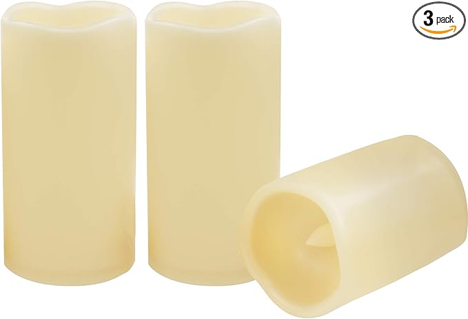 CANDLE CHOICE 3 Waterproof Outdoor Battery Operated Flameless LED Pillar Candle with Timer Flickering Plastic Resin Electric Decorative Light for Lantern Patio Garden Home Decor Party Wedding