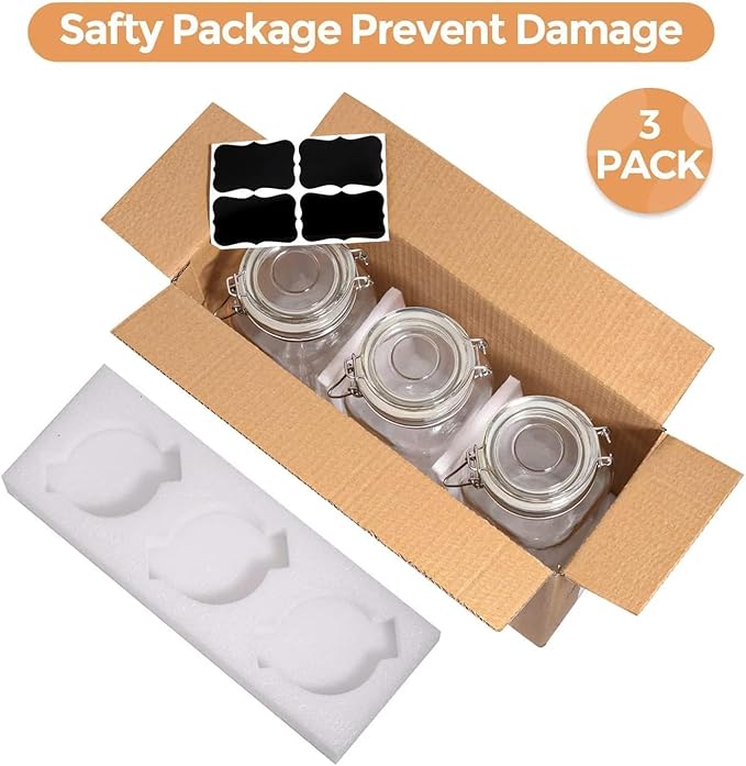 - Airtight Mason Jars: Glass jars with airtight lid is made of food-graded glass; Each kitchen canisters for countertop is well sealed, equipped with silicone gasket and a stainless iron locking clamp to make sure your food stay clean and fresh in storage