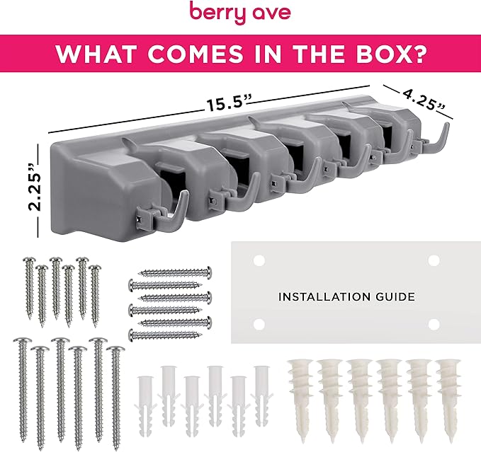 - NO SLIDE, NO MESS – Each commercial grade broom hanger has a 35 pound holding capacity. Thanks to the spring loaded, double rubber gripped slots, the Berry Ave utility hooks can hold anything from wet mops and dirty rakes to baseball bats, without any annoying slipping.