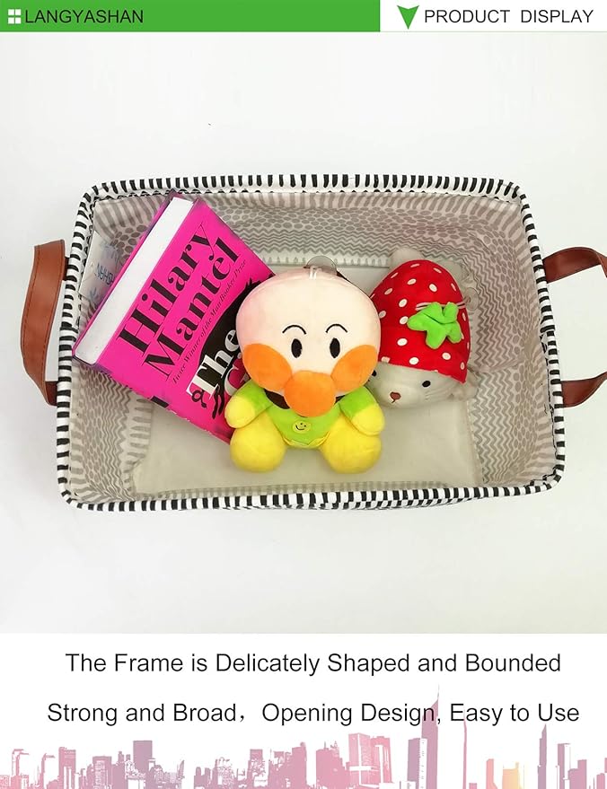 LANGYASHAN Rectangular Storage Bin Collapse Canvas Fabric Cartoon Storage Basket with Handles for Organizing Home Kitchen Boys and Girls Toys Office Closet Shelf Baskets (Rec Black line)