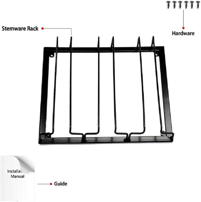 - ๐ทEASY TO INSTALL: Comes with the mounting hardware, no advance drilling advance required, just a few minutes to complete the installation. Organize your stemware collection, keep your wine glasses under the cabinet.