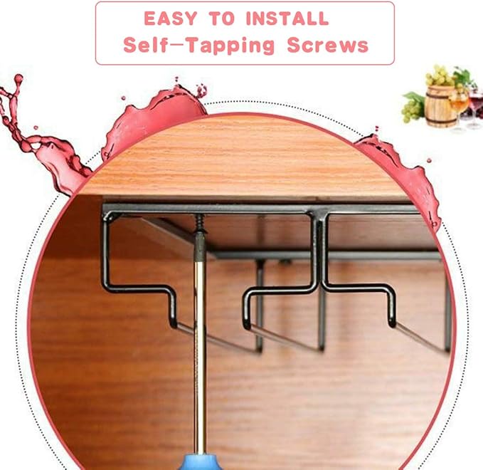 - ๐ทEASY TO INSTALL: Comes with the mounting hardware, no advance drilling advance required, just a few minutes to complete the installation. Organize your stemware collection, keep your wine glasses under the cabinet.