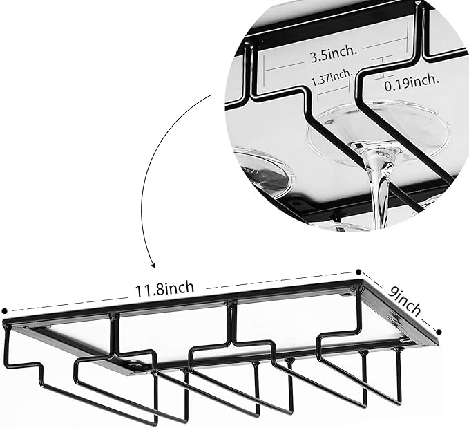 - ๐ทSize: Length: 11.8 inch x Width: 9 inch x Height: 2.7 inch. Pls make sure our wine glass rack is suitable for your cabinet.