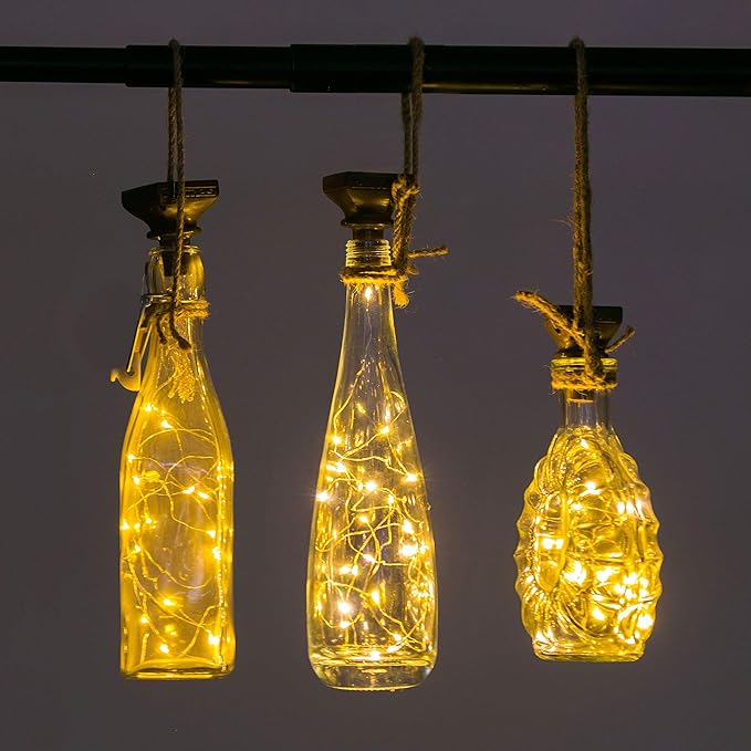 - 【The Perfect Gift for Your Loved Ones】: These exquisite wine bottle lights combine artisanal craftsmanship with enchanting charm, featuring a handmade waterproof copper string lights adorned with 20 twinkling fairy lights. Their whimsical glow transforms any bottle into a magical luminary, creating a captivating ambiance that makes them the perfect gift to express your affection.