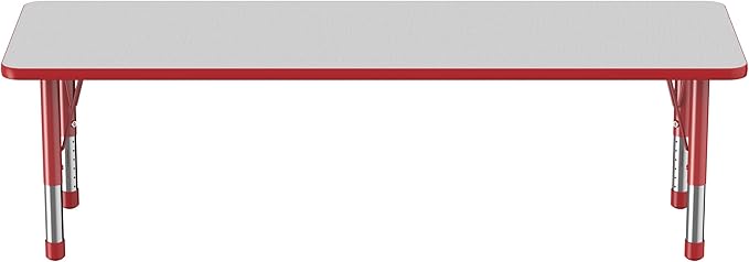 FDP Rectangle Activity School and Classroom Kids Table (24 x 72 inch), Chunky Toddler Legs, Adjustable Table Height 15-24 inches - Gray Top and Red Edge