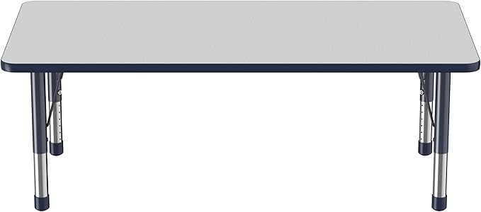 FDP Rectangle Activity School and Classroom Kids Table (30 x 60 inch), Toddler Legs, Adjustable Height 15-24 inches - Gray Top and Navy Edge