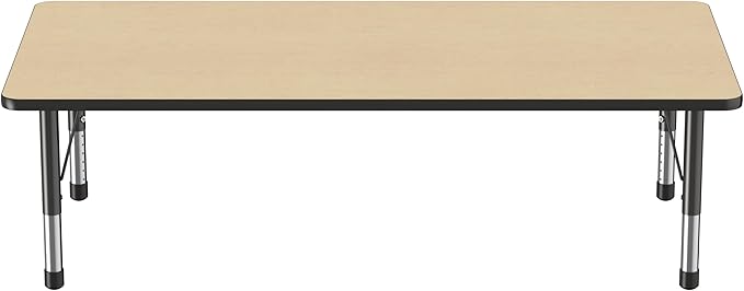 FDP Rectangle Activity School and Classroom Kids Table (36 x 72 inch), Toddler Legs, Adjustable Height 15-24 inches - Maple Top and Black Edge