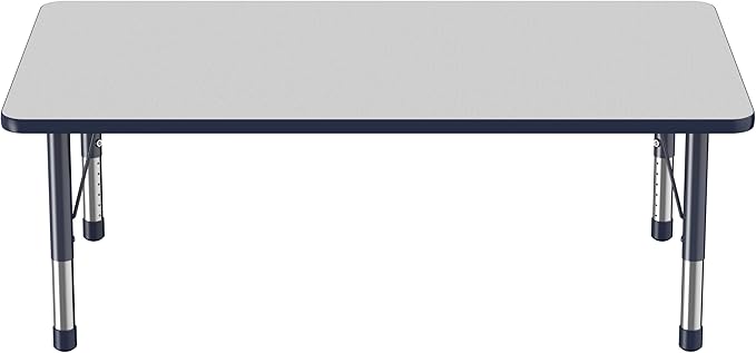 FDP Rectangle Activity School and Classroom Kids Table (36 x 60 inch), Toddler Leg, Adjustable Height 15-24 inches - Gray Top and Navy Edge