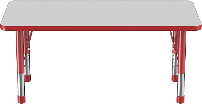 FDP Rectangle Activity School and Kids Classroom Table (24 x 48 inch), Toddler Legs, Adjustable Height 15-24 inches - Gray Top and Red Edge