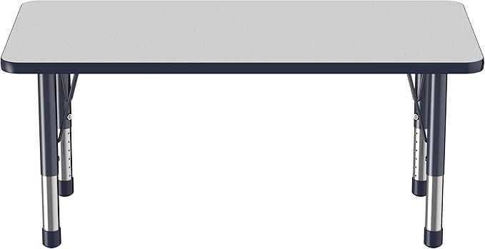 FDP Rectangle Activity School and Kids Classroom Table (24 x 48 inch), Toddler Legs, Adjustable Height 15-24 inches - Gray Top and Navy Edge