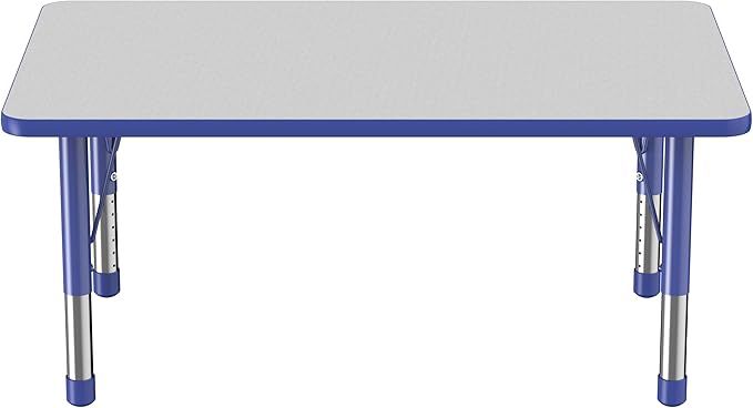 FDP Rectangle Activity School and Classroom Kids Table (30 x 48 inch), Chunky Toddler Legs, Adjustable Height 15-24 inches - Gray Top and Blue Edge