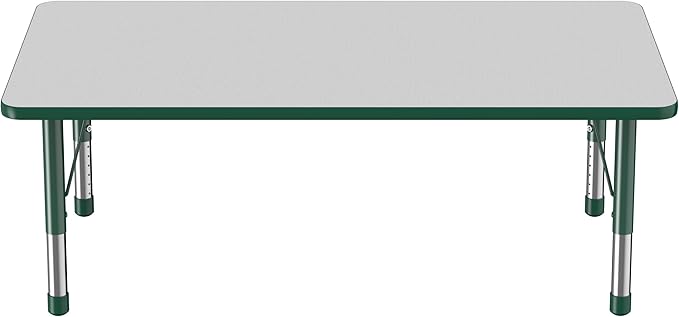 Factory Direct Partners FDP Rectangle Activity School and Classroom Kids Table (36 x 60 inch), Toddler Leg, Adjustable Height 15-24 inches - Gray Top and Green Edge