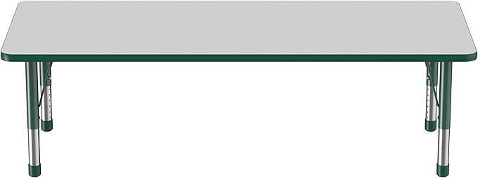 FDP Rectangle Activity School and Classroom Kids Table (30 x 72 inch), Chunky Toddler Leg, Adjustable Height 15-24 inches - Gray Top and Green Edge