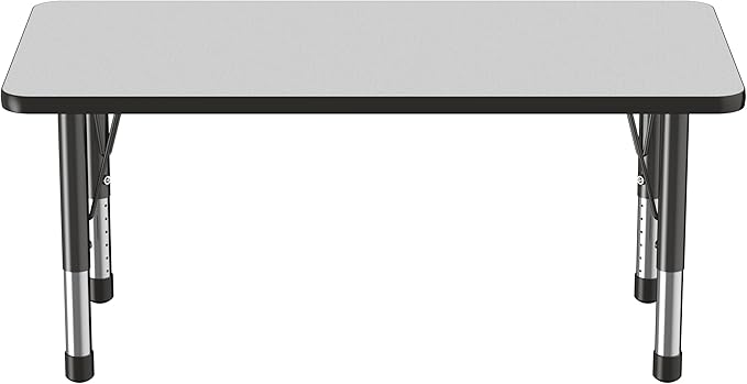 FDP Rectangle Activity School and Kids Classroom Table (24 x 48 inch), Toddler Legs, Adjustable Height 15-24 inches - Gray Top and Black Edge