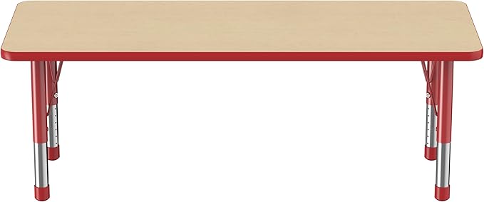 FDP Rectangle Activity School and Classroom Kids Table (24 x 60 inch), Chunky Toddler Legs, Adjustable Height 15-24 inches - Maple Top and Red Edge