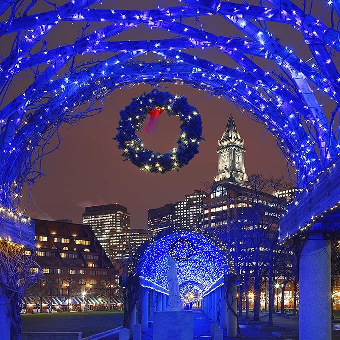 - 66ft Christmas string lights with 200 blue individual LED bulbs. Each Christmas lights has end-to-end connection, you can connect up to 4 sets together to illuminate a wider range.
