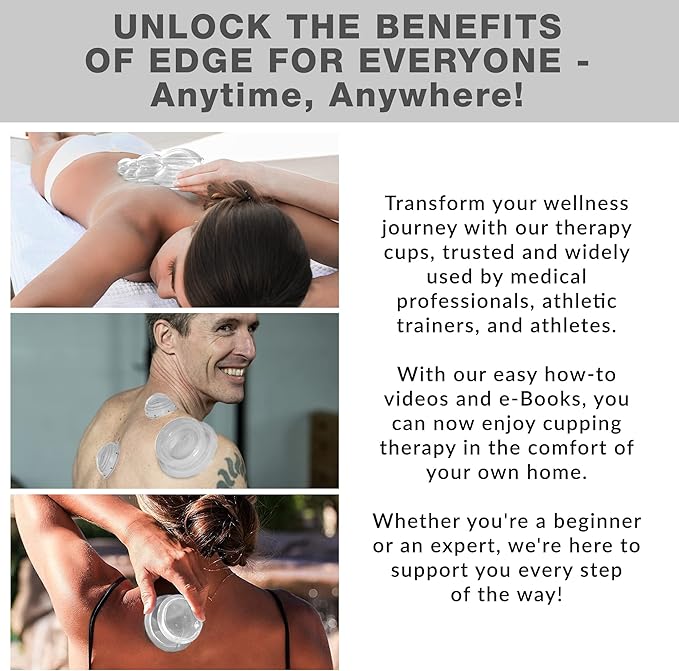 - Experience the next level of cupping therapy with Advanced EDGE cupping set. Our FlexiPure cups ensure powerful suction with precise control, offering advantage over traditional glass, plastic, or heavy and bulky electric "smart" cups in both stationary and moving techniques.
