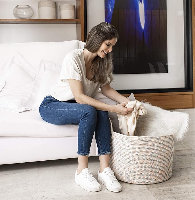 - Soft Yet Durable Cotton Rope: This premium woven laundry basket is crafted from cotton, no chemicals, no plastics. Safe for children and pets, with a soft texture that won’t scratch floors or hands.