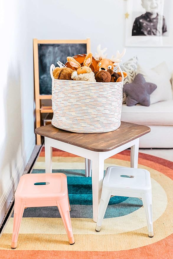 OrganiHaus Toy Storage Basket for Kids, Large Cotton Rope Organizer Bin for Nursery, Toy Box, Blanket Holder, Baby Hamper for Living Room, Soft & Washable, 20x13 inches - Rainbow