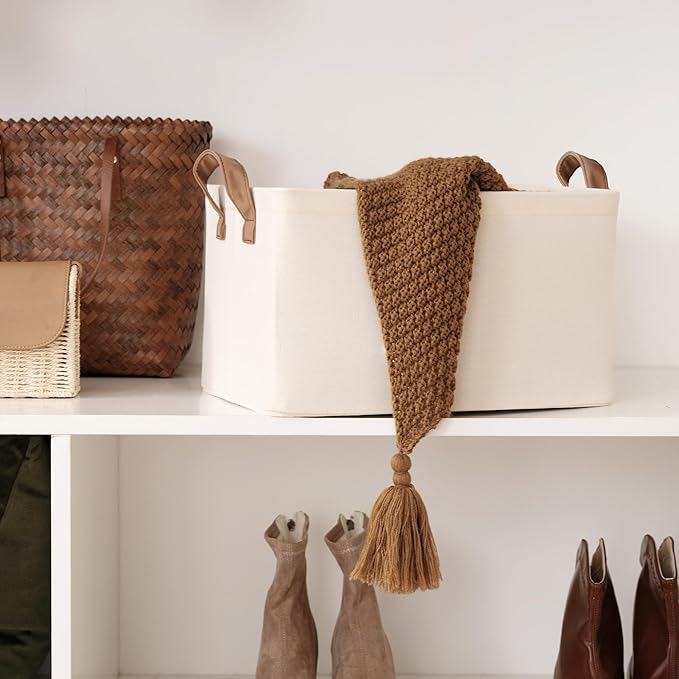 - Handle with Ease: With the 2 PU handles securely riveted to the sides of the storage bin, you can easily carry items without tearing the handles.