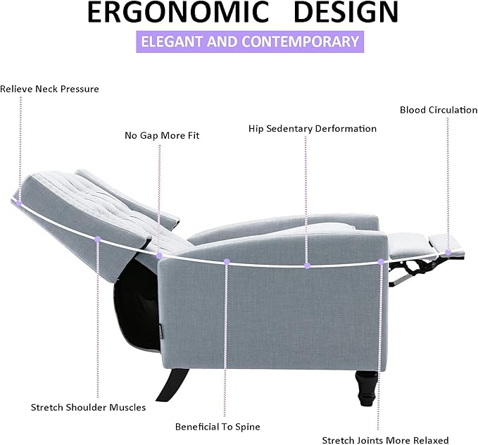 - 🐇➤【EASILY RECLINES】Sit back and relax in the push back recliner, to fully recline this chair, just push on arms and lean against the back of the recliner to find your most comfortable positioning. Enjoy the highest caliber of comfort and relaxation with this classy.