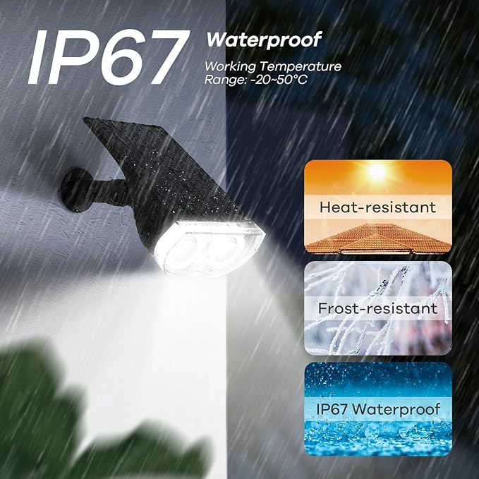 - ☆Supreme Quality & IP67 Waterproof☆: Free from unpleasant odour, the durable anti-UV ABS material will protect the spot lights from discoloring. IP67 waterproof rating allows the outdoor lights to withstand all kinds of terrible weather. Workable under temperature ranging from -20~50°C.