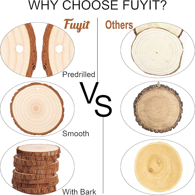 - Easy to use: You can hang hang the wood slices easily with a predilled small hole and attached jute twine and red-white cotton twine, 33 feet for each. Also, adopt upgraded drying technology and adopt scientific control of moisture ratio in wood slices, to prevent the wood from drying or cracking