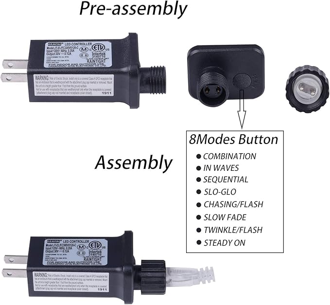 - 8 blinking modes: Combination, in waves, sequential, slogs, chasing/flash, slow fade, twinkle/flash, and steady on
