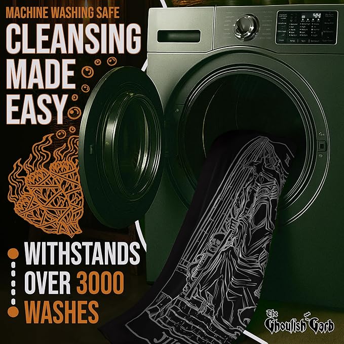 The Ghoulish Garb Justice Tarot Card Tapestry (Black & White) - Grim Reaper - Gothic Halloween Home Decor Wall Hanging (60" x 50")