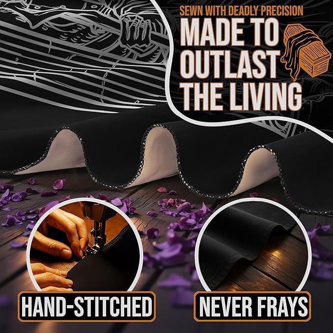 The Ghoulish Garb Justice Tarot Card Tapestry (Black & White) - Grim Reaper - Gothic Halloween Home Decor Wall Hanging (80" x 68")